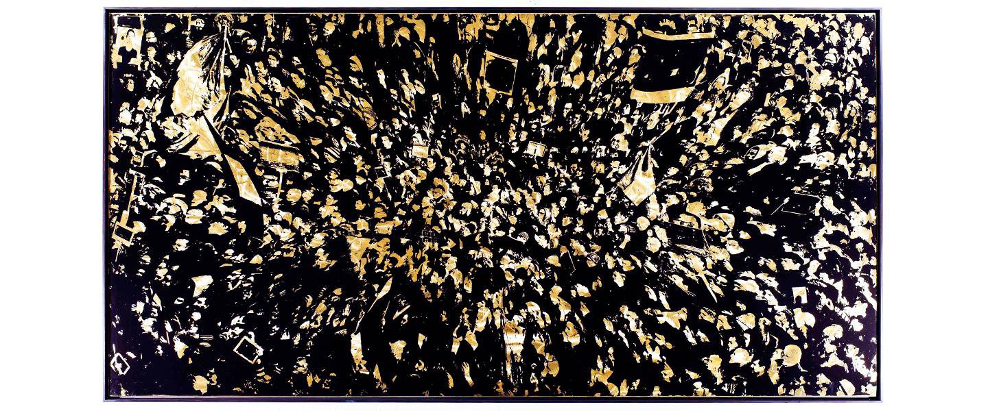 Eine weitere Variante des Kunstdrucks, die man insbesondere in jüngerer Zeit unter Davidoffs Werken findet, ist eine spezifische Form des Reliefdrucks auf Edelmetall. In Zusammenarbeit mit einem Münchner Traditionsunternehmen, schafft der Künstler an der Schnittstelle zwischen Zwei- und Dreidimensionalität Kunstdrucke, die nicht nur rein visuell, sondern auch haptisch und somit synästhetisch gelesen werden können. Insbesondere das stets in seinen Arbeiten wiederkehrende Thema der „Menschenmenge“ scheint sich ideal im Kunstdruck behandeln zu lassen. Durch den dynamischen Untergrund und die heterogene Oberfläche unterstützt das Medium hier den Inhalt, in dem es die gleichzeitige Existenz der Menschenmasse und der des Individuums betont. Und auch die dem Kunstdruck inhärente Eigenschaft der Reproduzierbarkeit verweist einmal mehr auf das Spannungsverhältnis zwischen Individualität und Masse, während zur selben Zeit die natürlichen technischen Grenzen des Kunstdrucks innerhalb der detailgetreuen Wiedergabe der Realität die für den Künstler so typische Melange zwischen Figürlichkeit und Abstraktion bestärken.